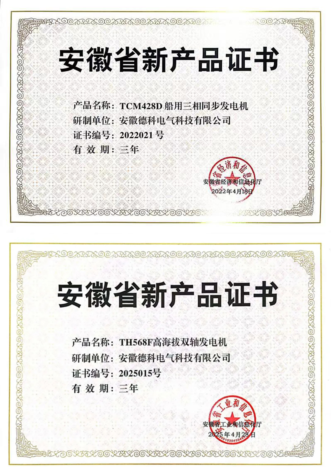 2025年5月,hy3380cc海洋之神电气自主研发的TCU468G陆用六极自励磁发电机TH568F高海拔双轴发电机,凭借领先技术优势,双双通过权威评审,成功入选《2025年第一批安徽省新产品认定名单》。